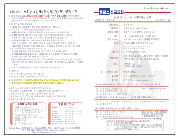 제목: 구원의 은혜에 감사하라! 본문: 로마서 10:9-15. 설교자: 황의정 목사 추수감사절에 감사를 묵상…