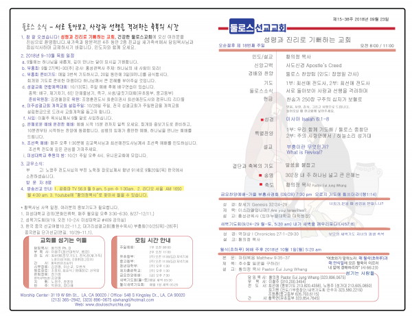 제목: 구원의 은혜에 감사하라! 본문: 로마서 10:9-15. 설교자: 황의정 목사 추수감사절에 감사를 묵상…