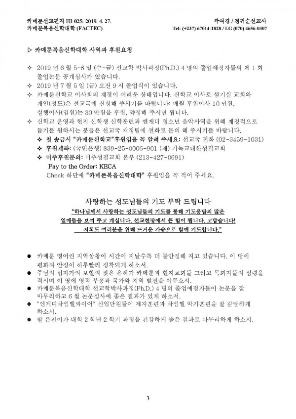 카메룬 선교편지 III